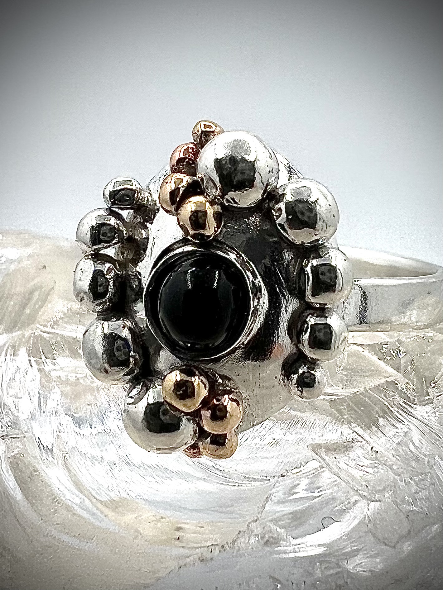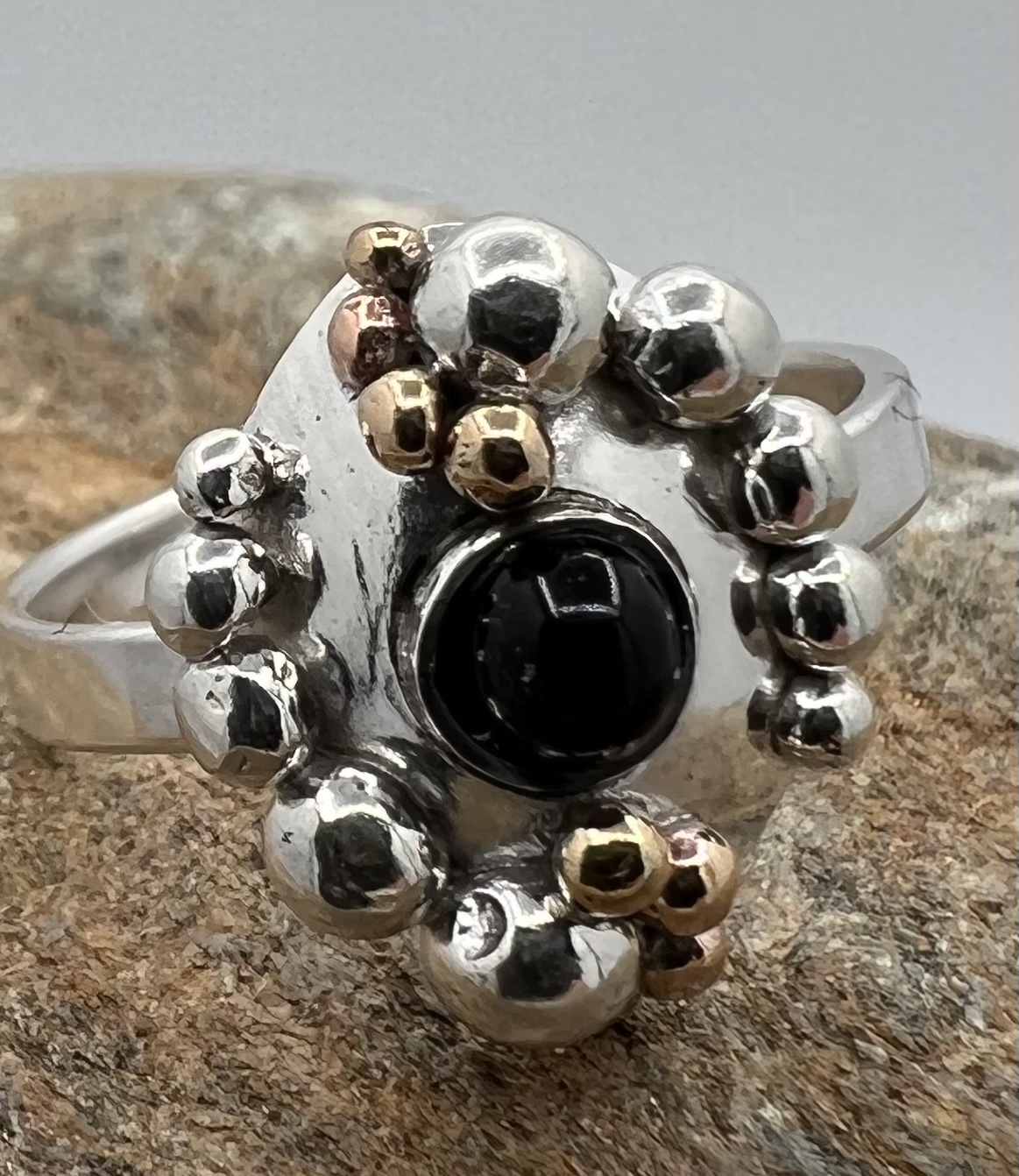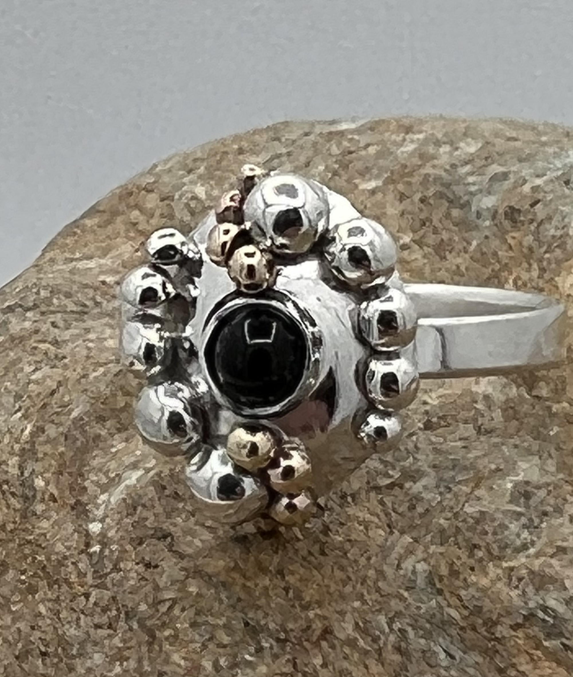 damesring zilver 925 met magnetiet en zilveren bolletje