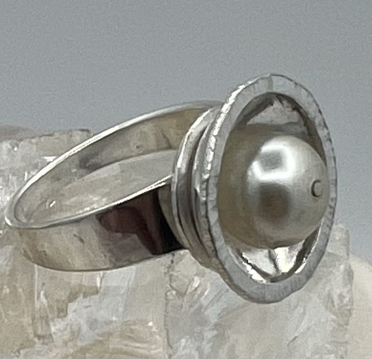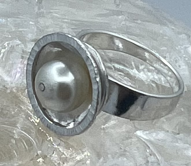 zilveren damesring gesmeden en gehamerd