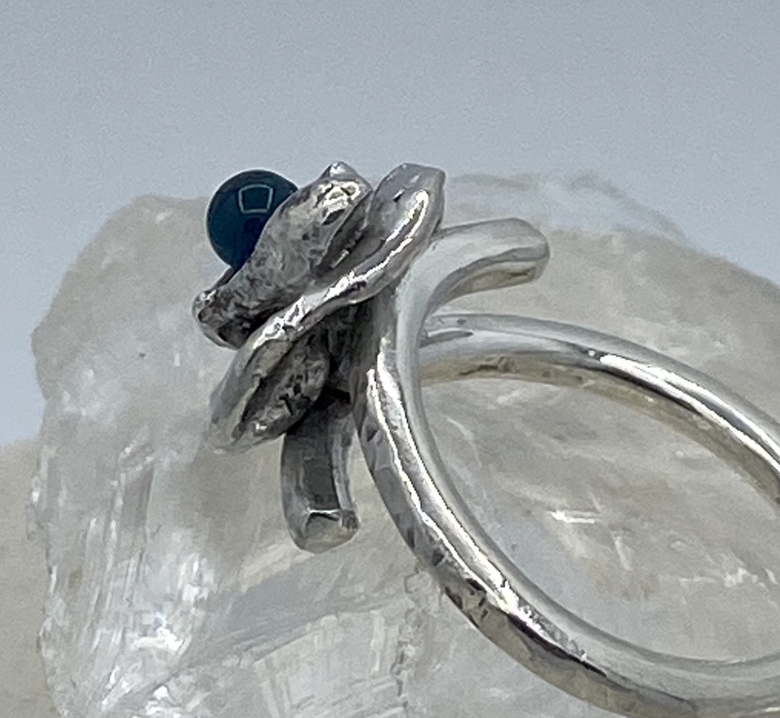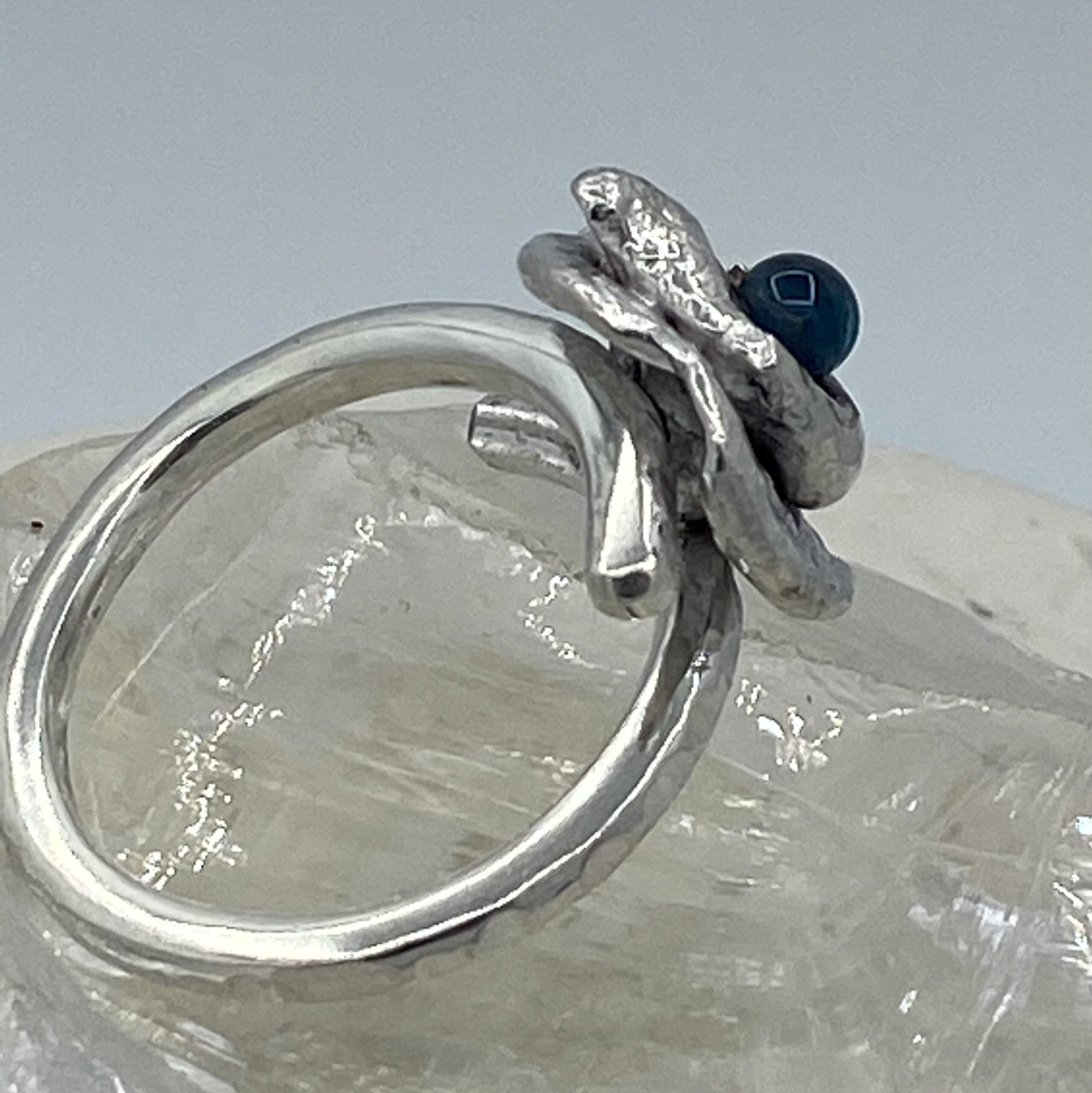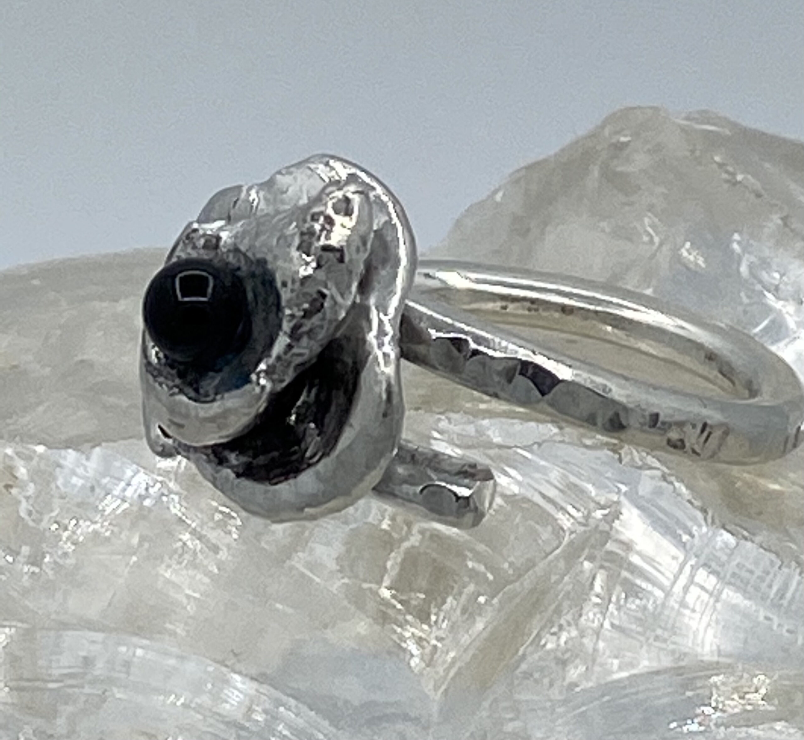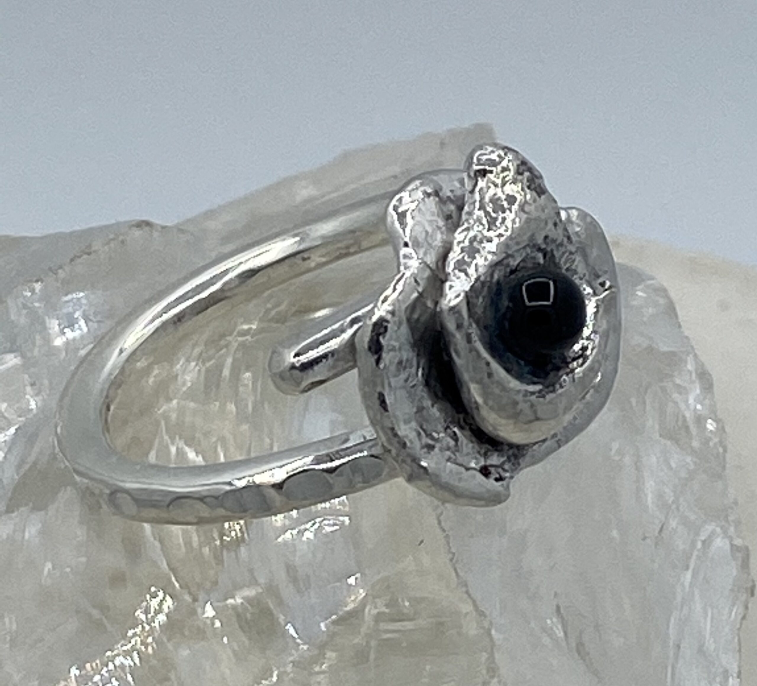 Damesring zilver 925 fantasie met glas zwart bolletje