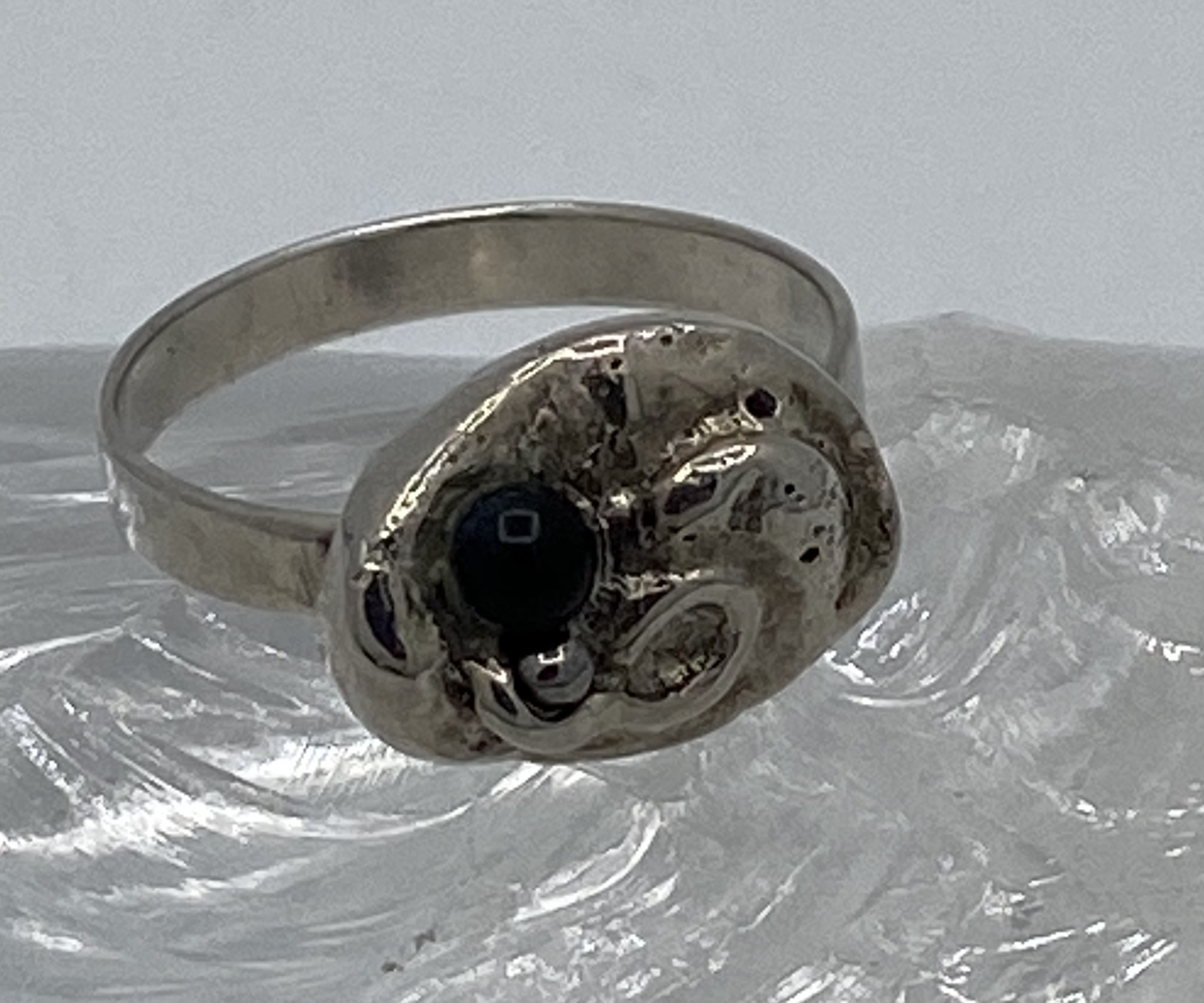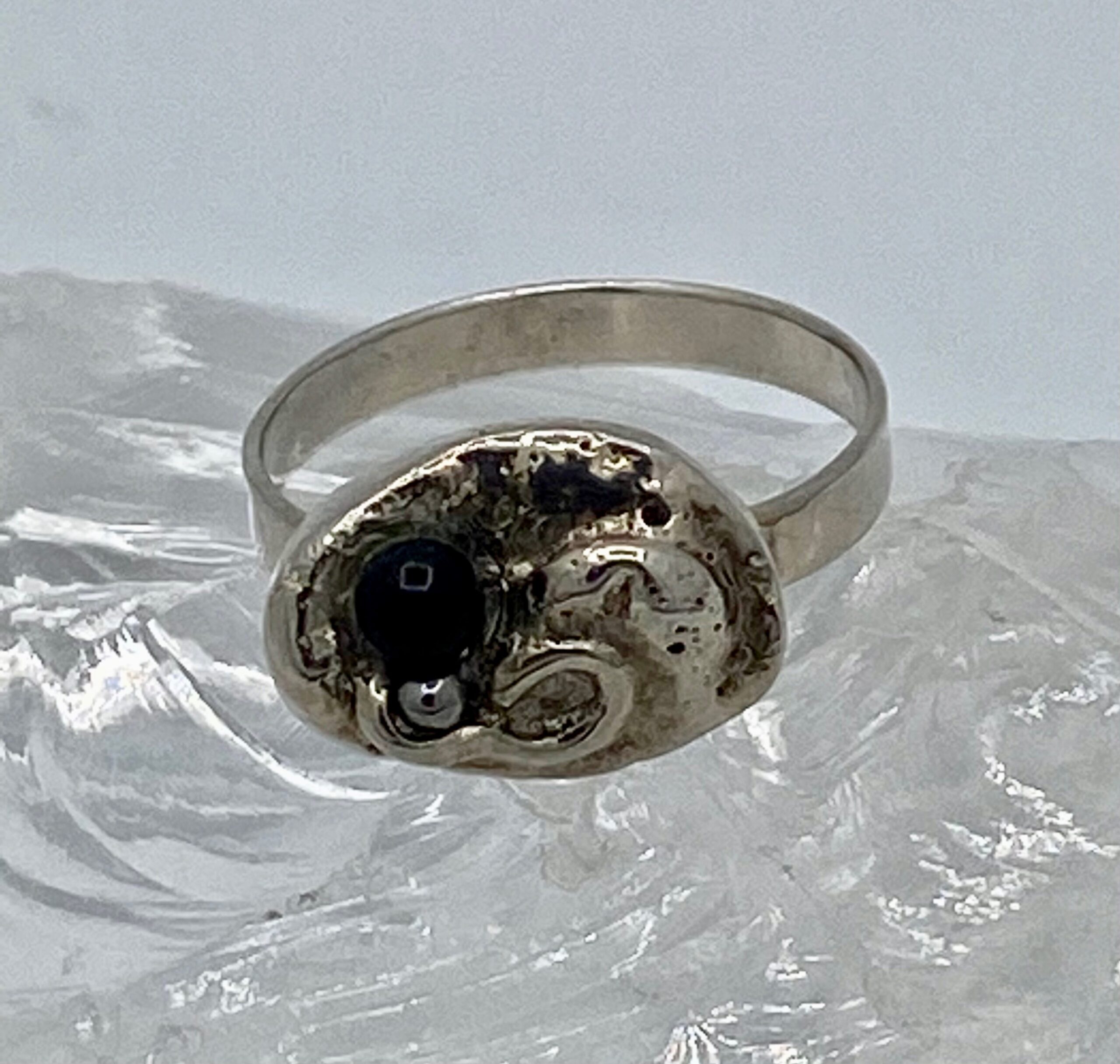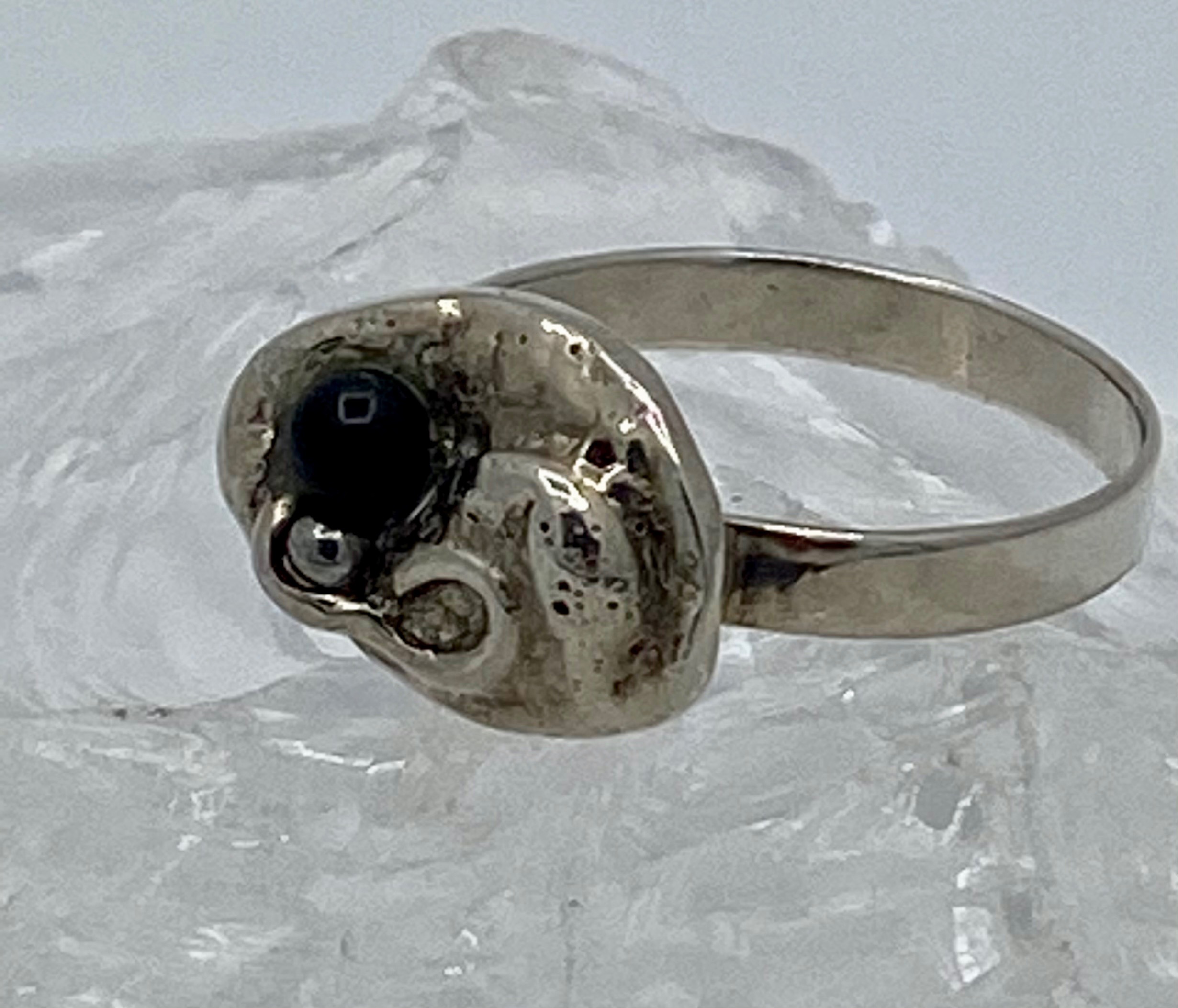damesring zilver 925 met magnetiet en zilveren bolletje