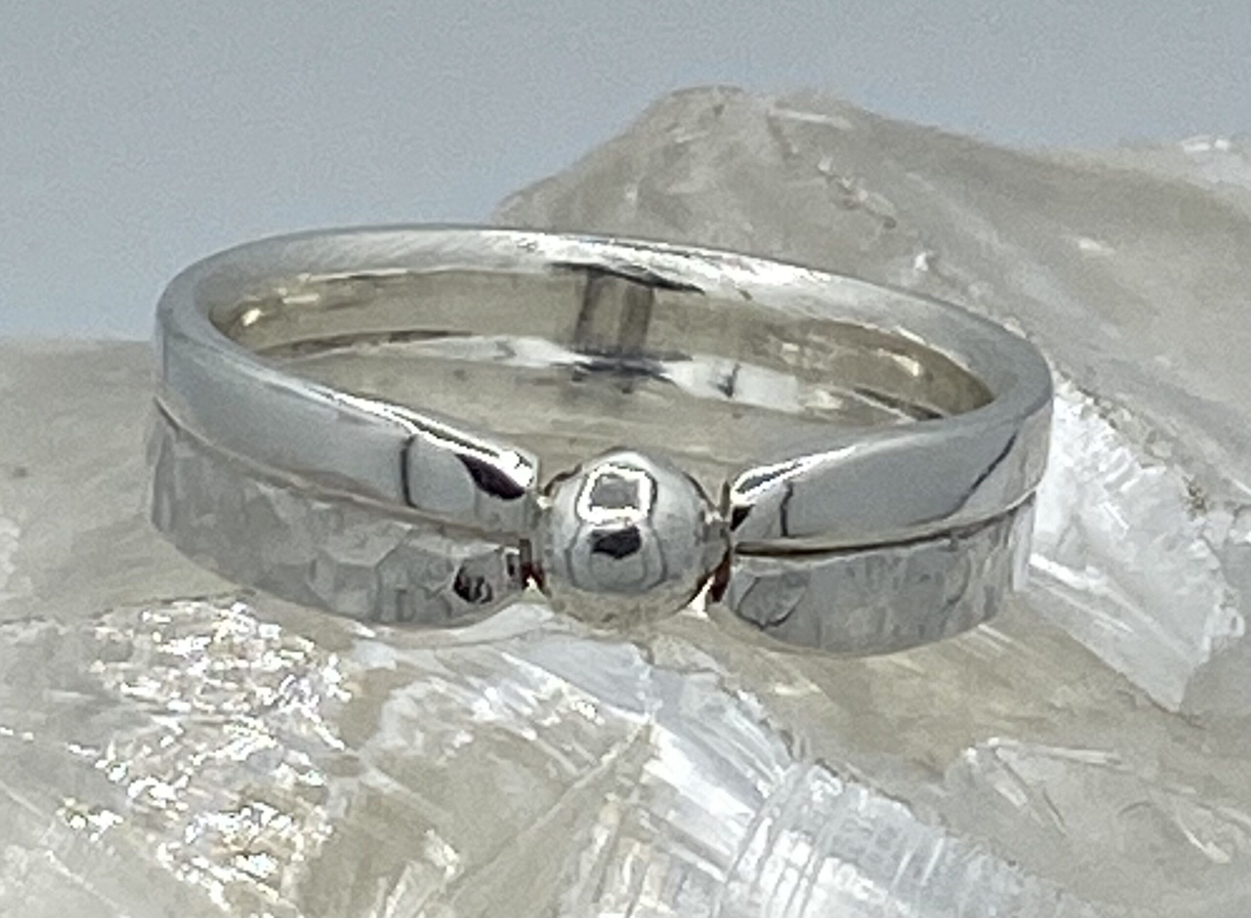 damesring zilver 925 met magnetiet en zilveren bolletje