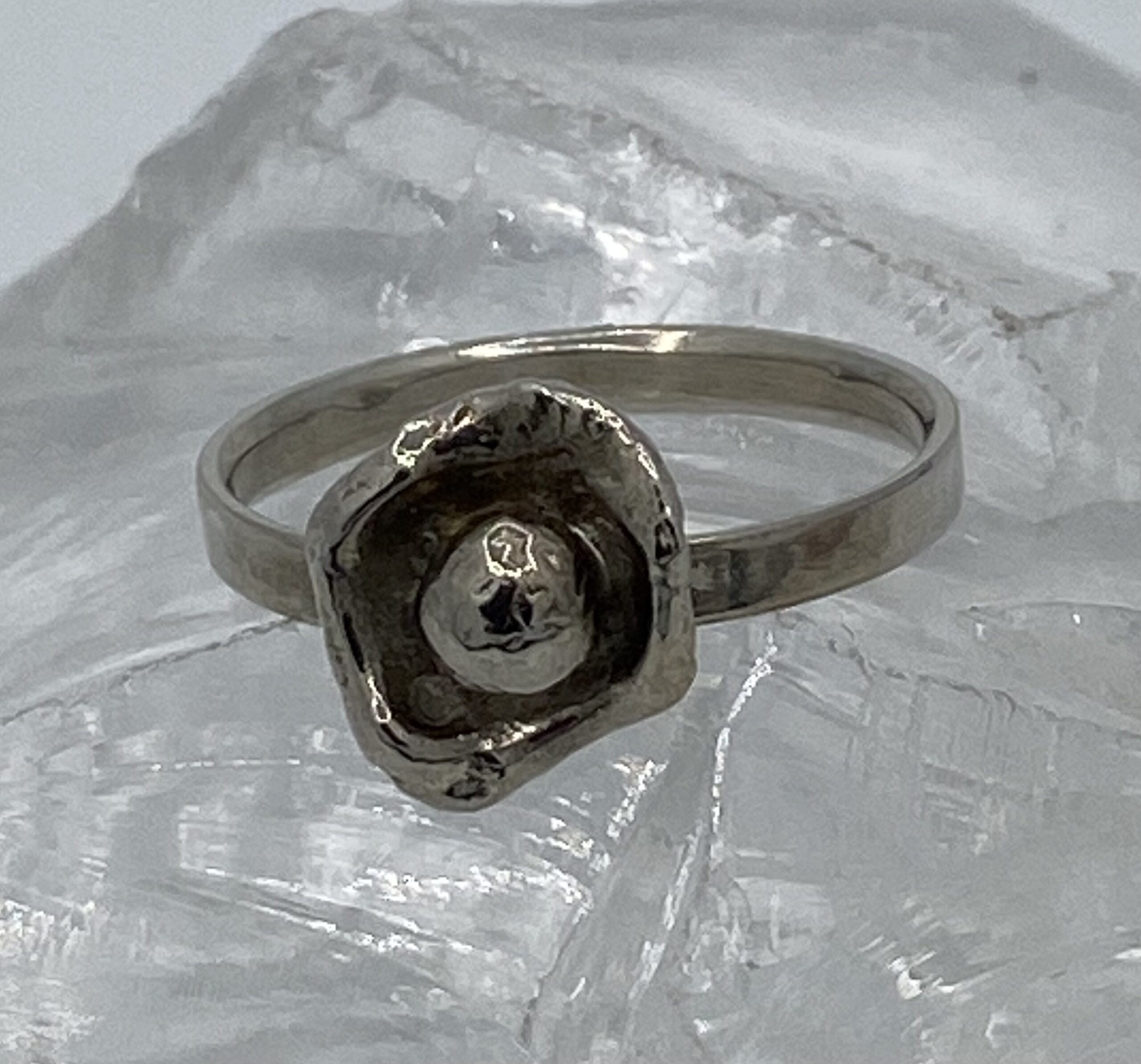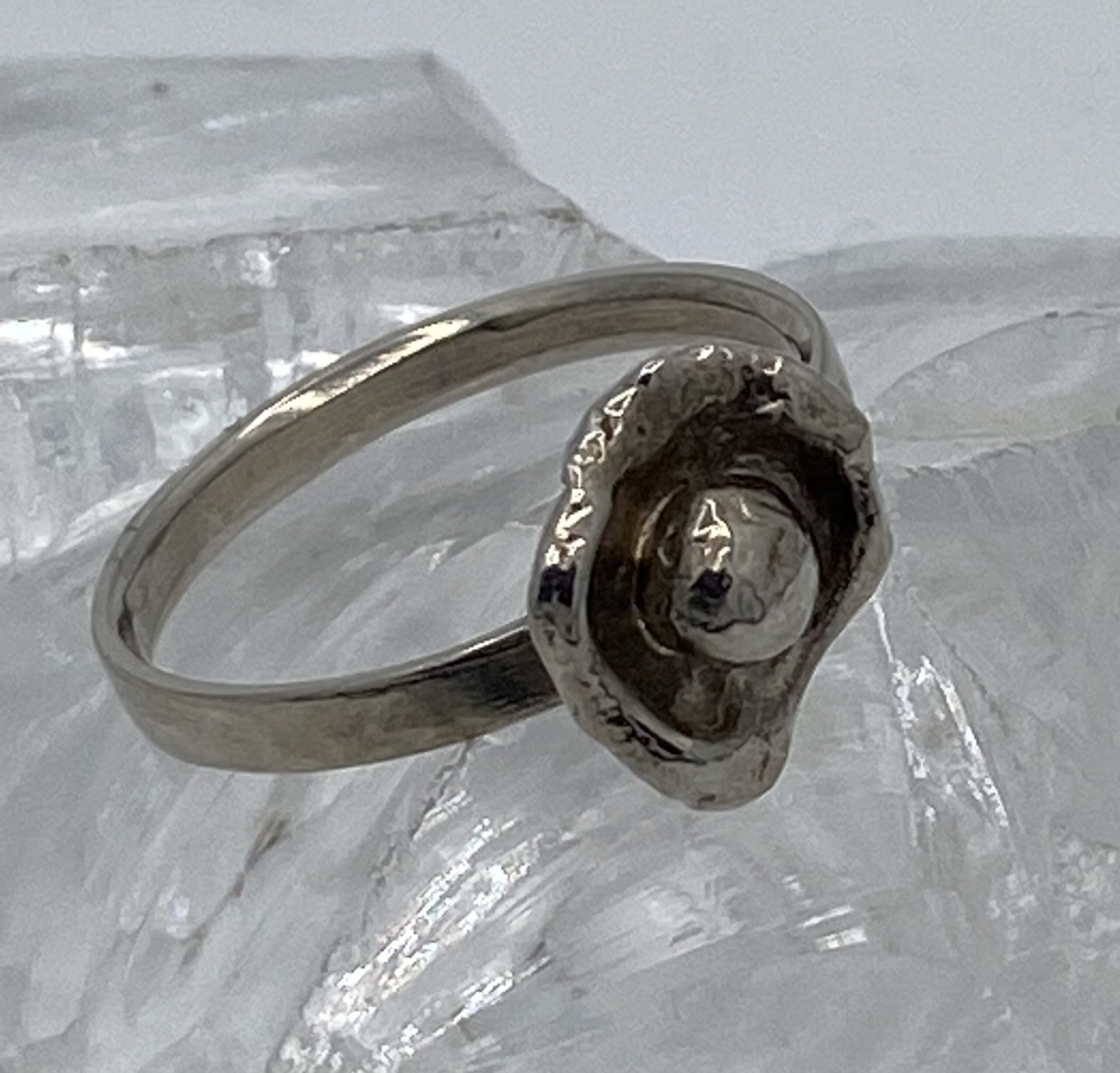 Damesring zilver 925 , gegoten met zilveren bolletje