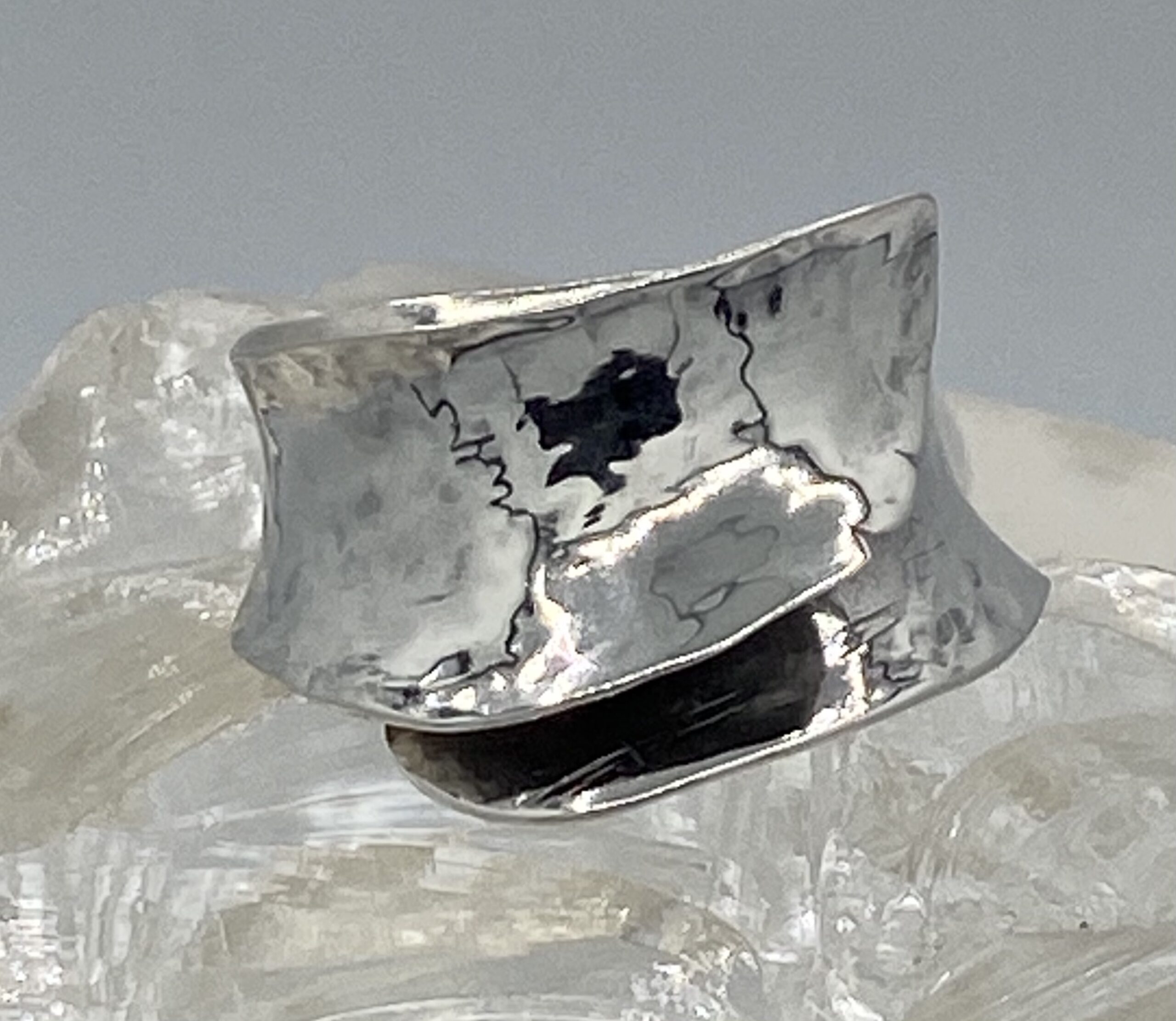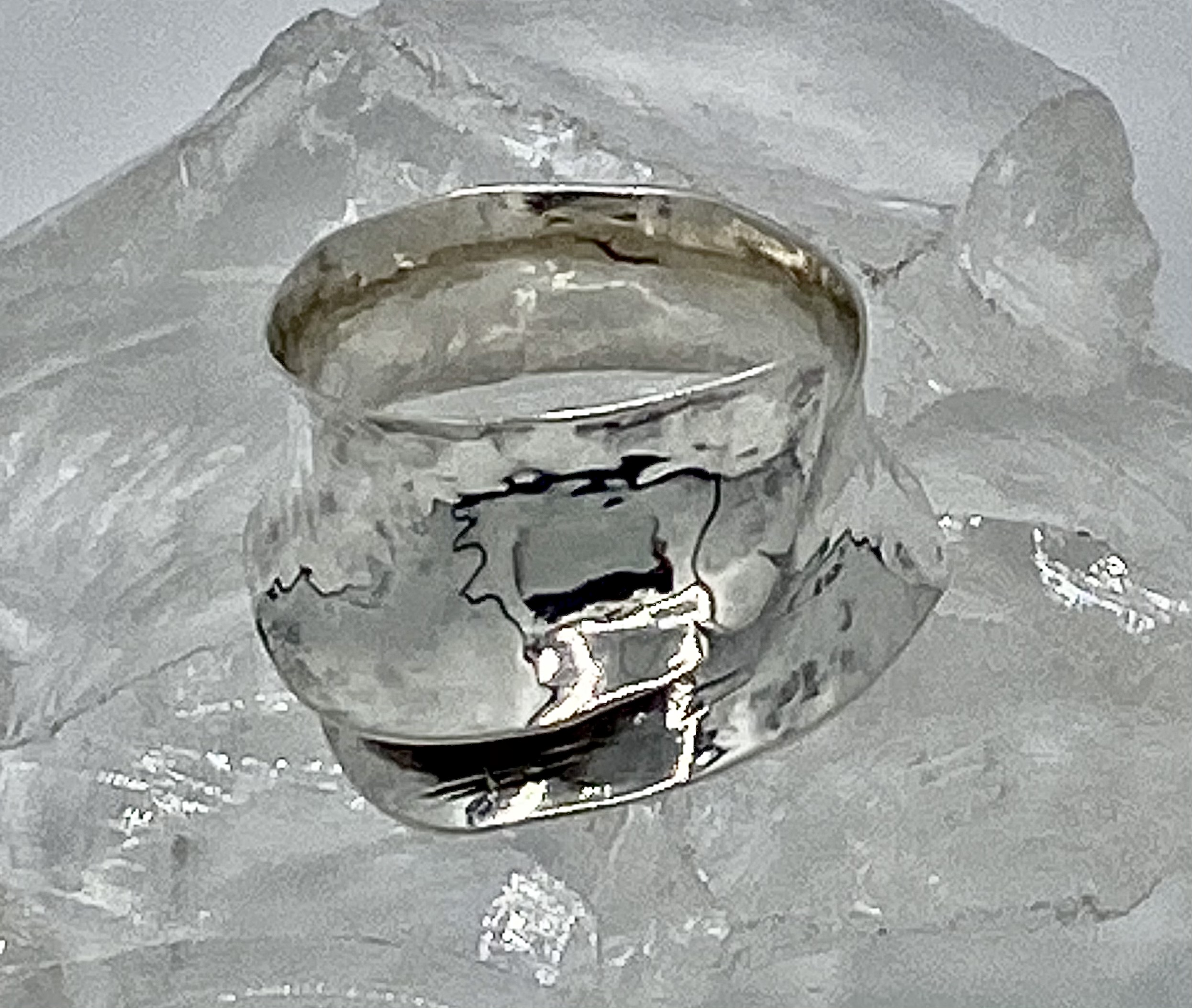 damesring,zilver 925 , gehamerd en met tombak omwikkeld