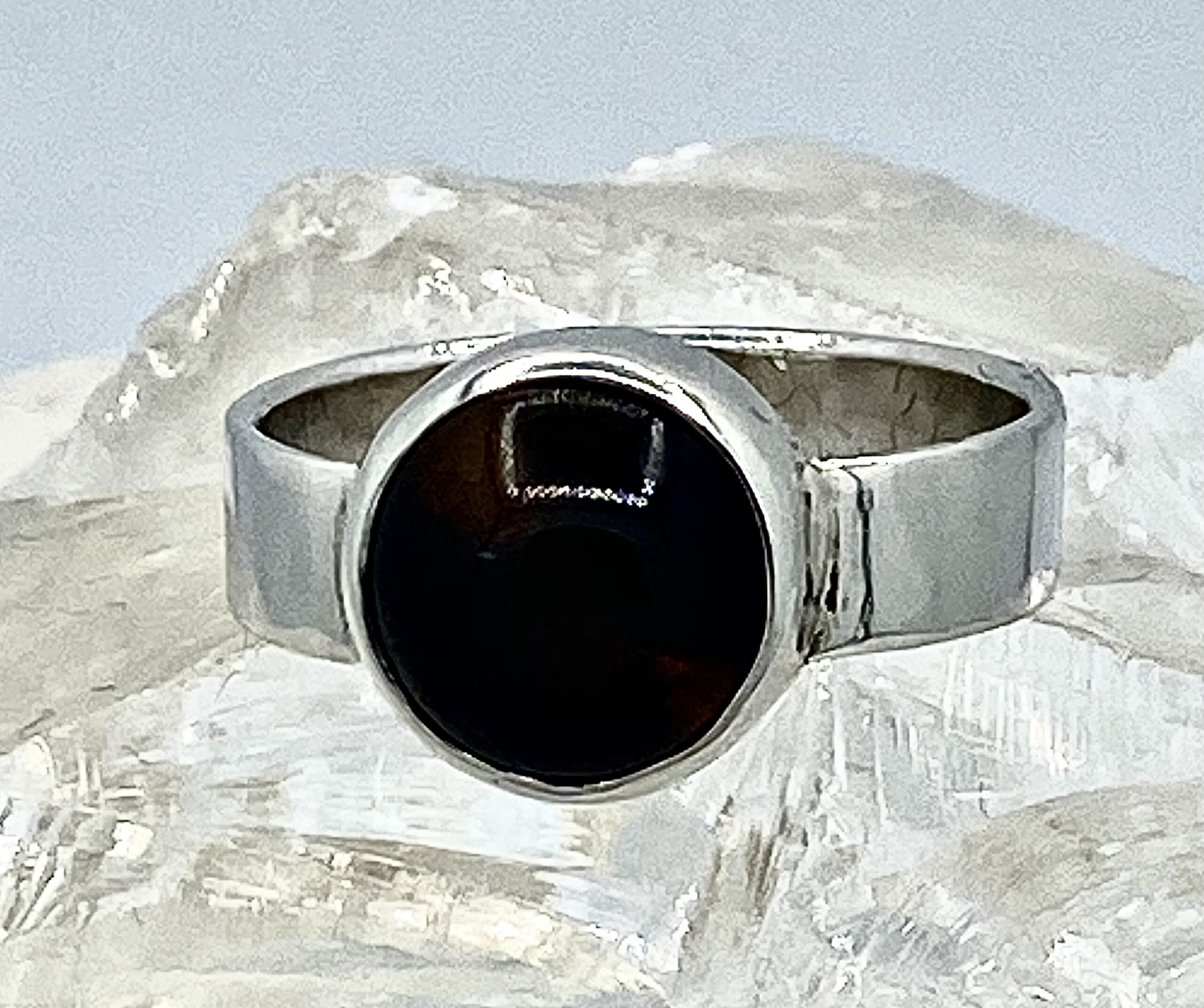 damesring zilver 925 met magnetiet en zilveren bolletje