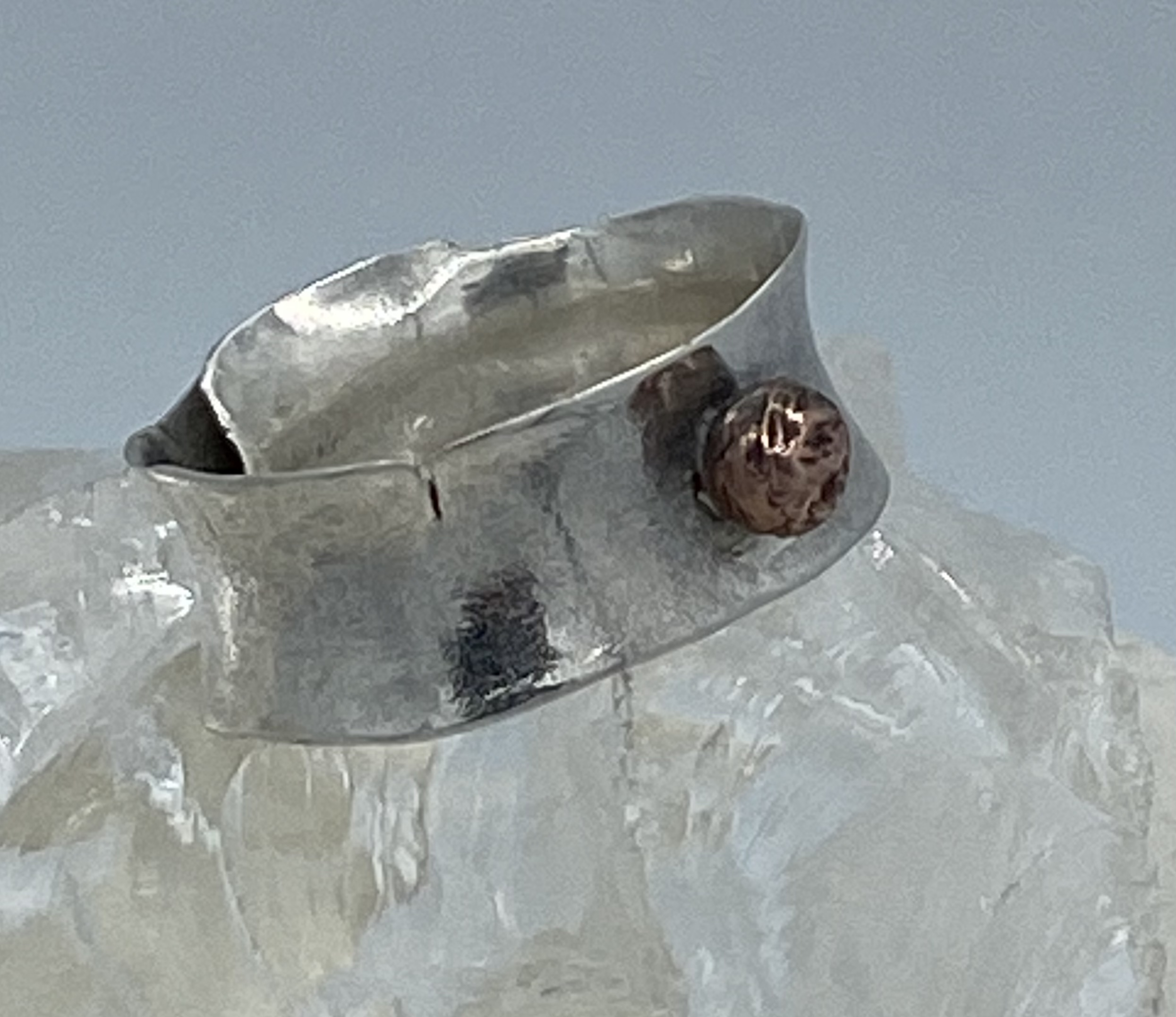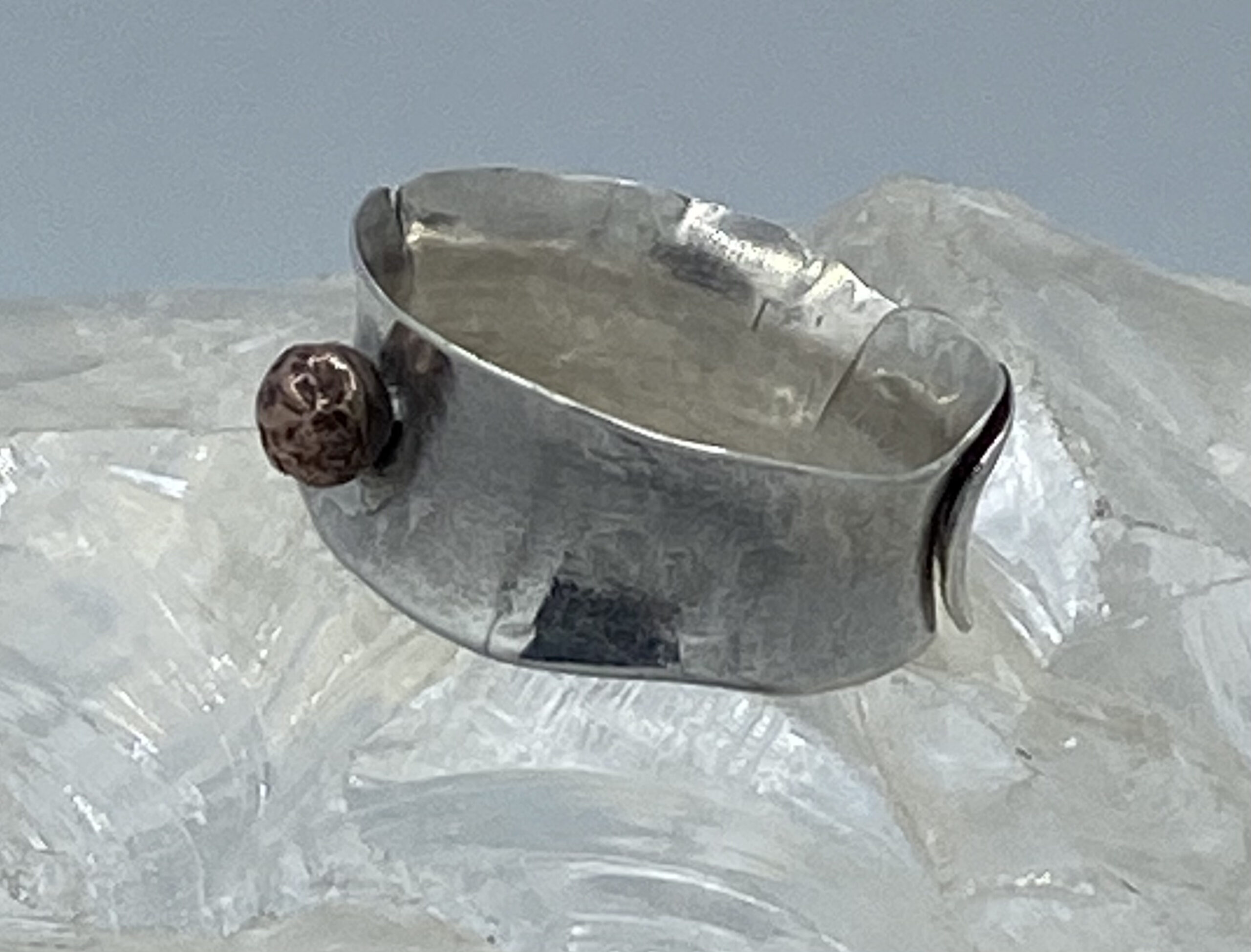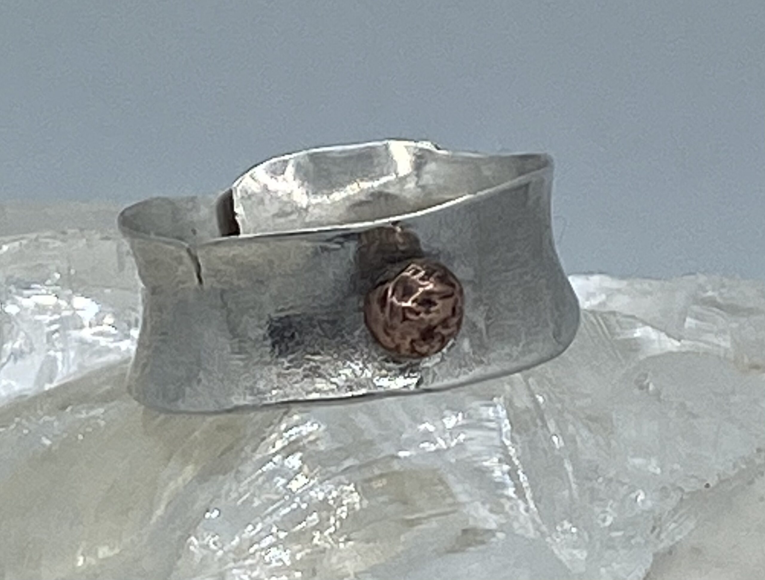damesring,zilver 925 , gehamerd en met tombak omwikkeld
