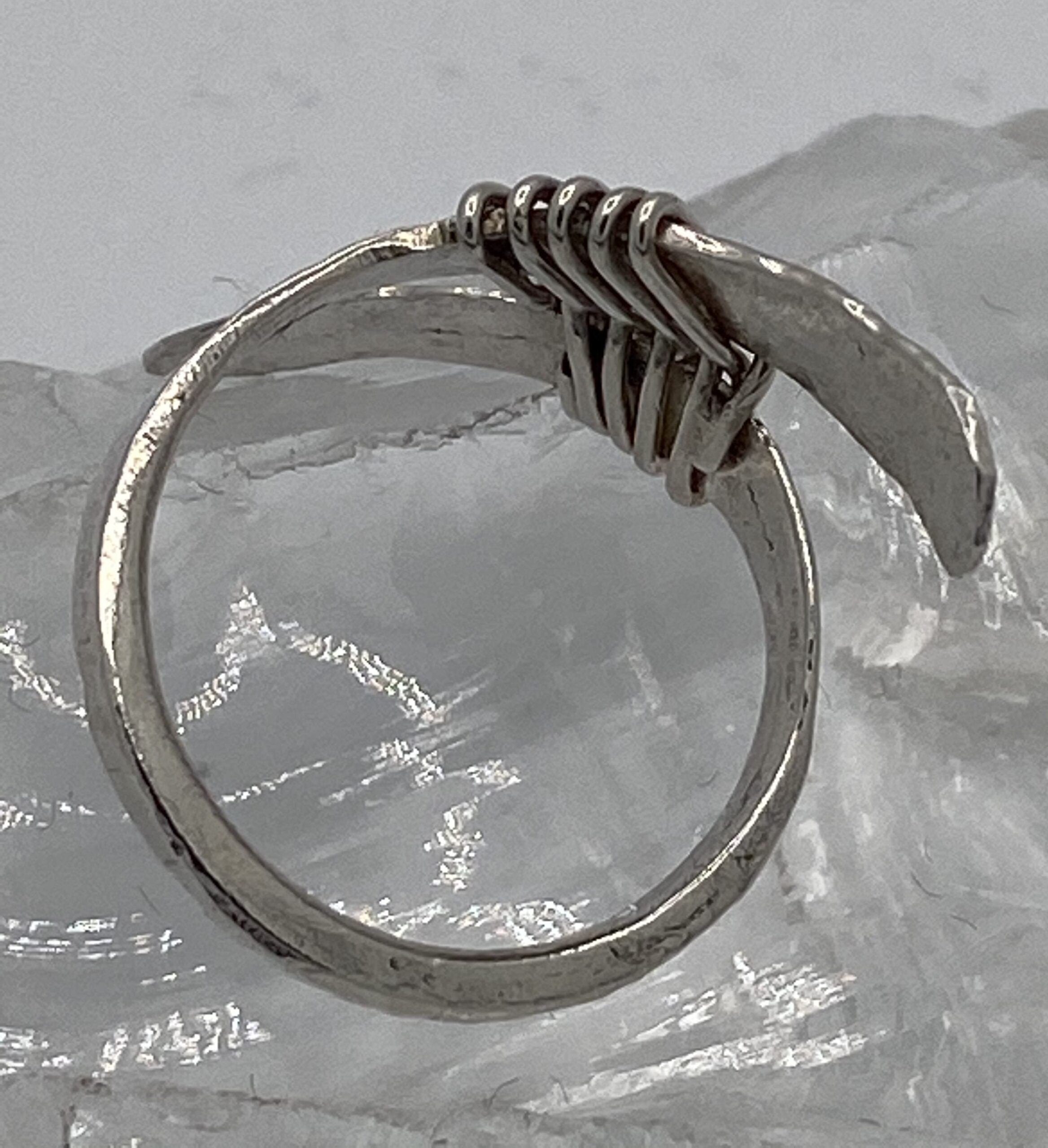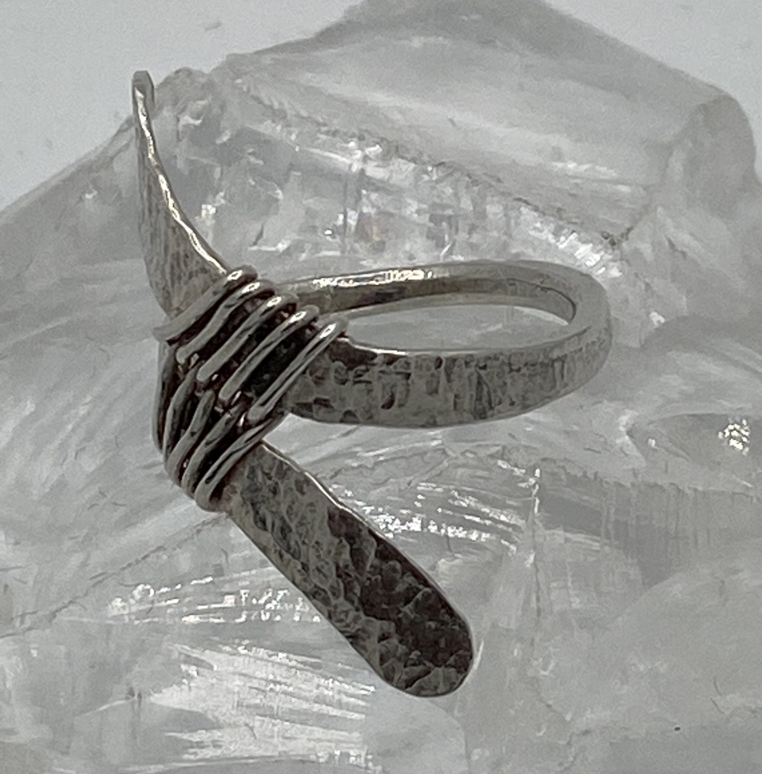 gesmeden en gehamerde ring met zilverdraad