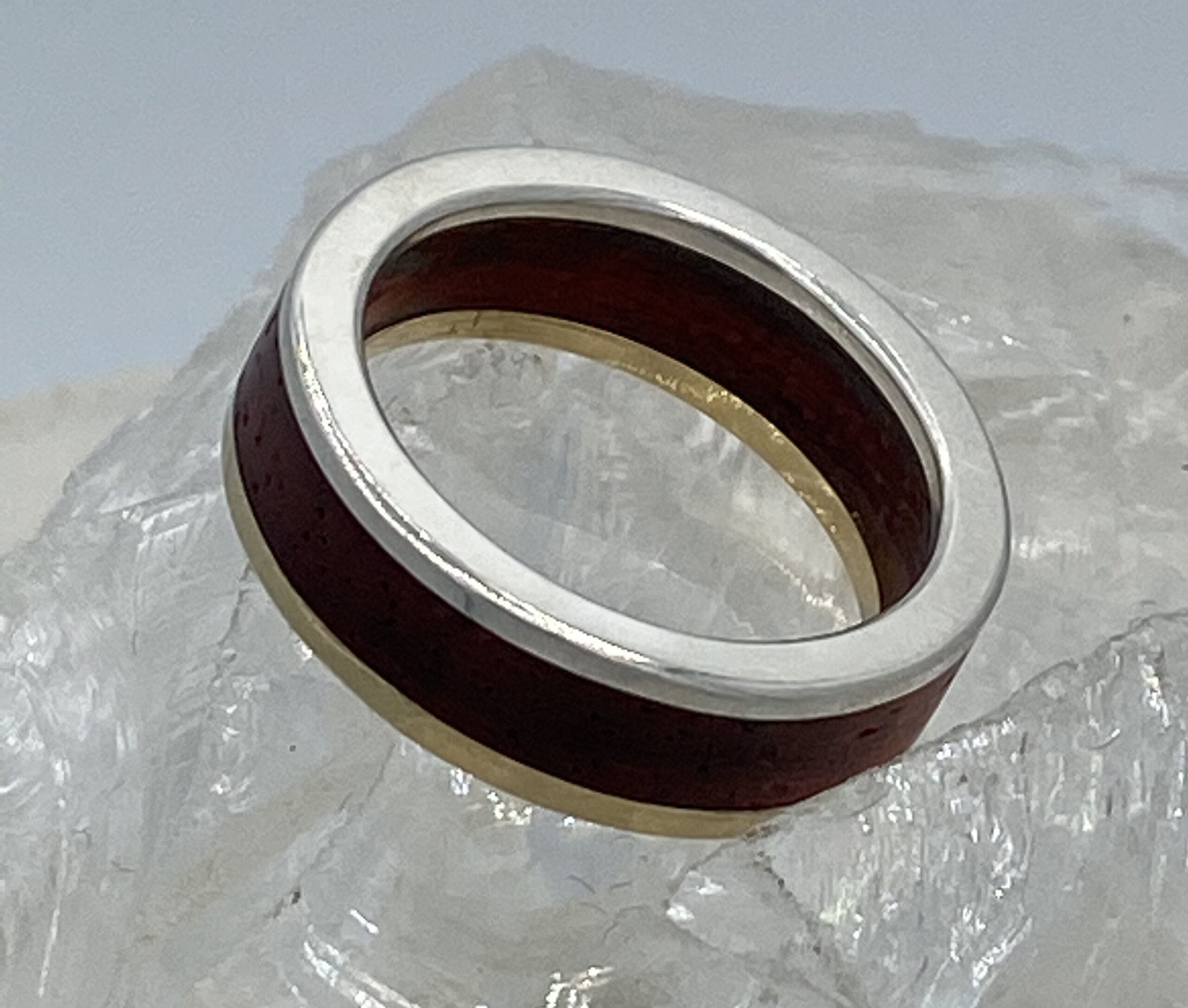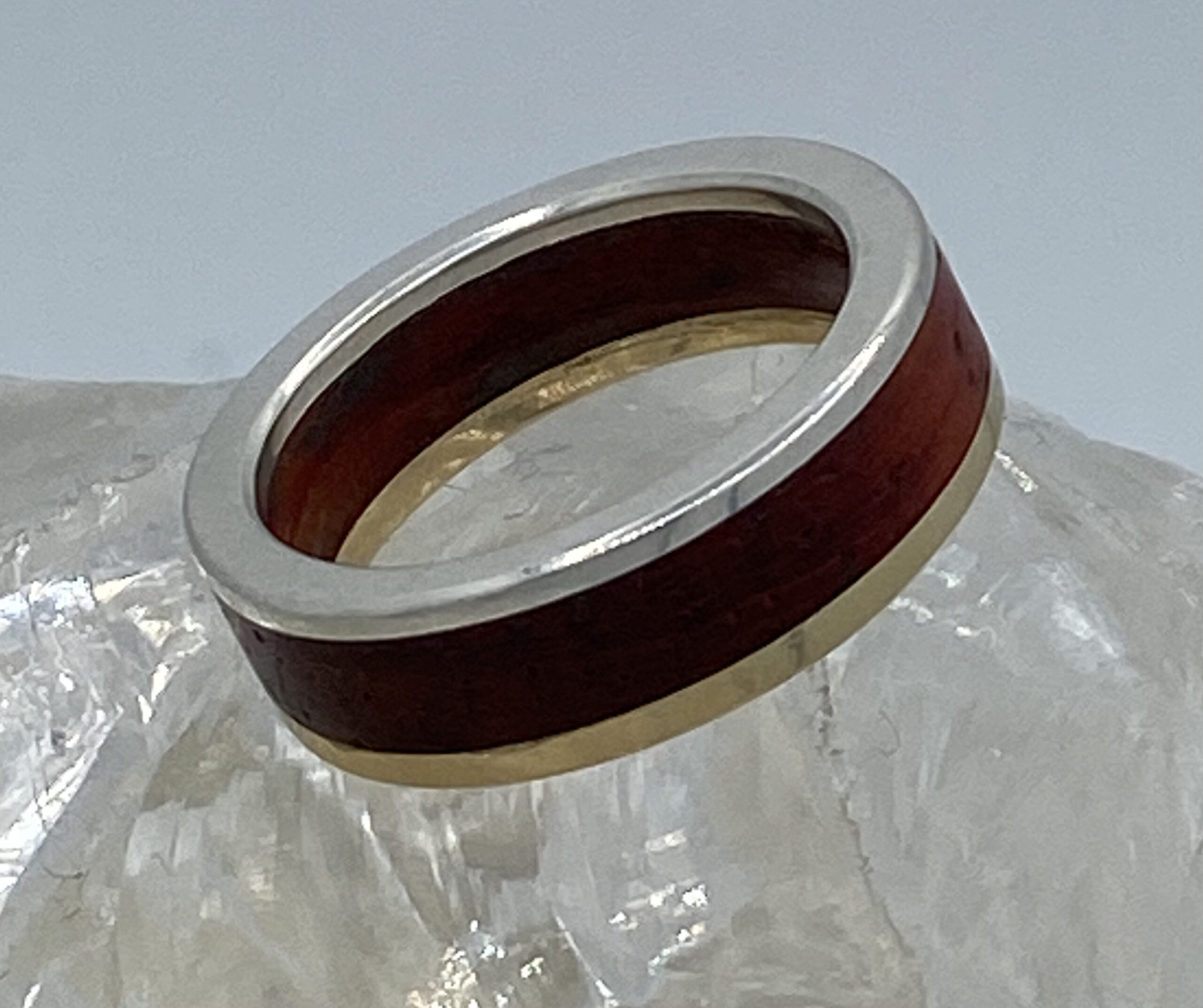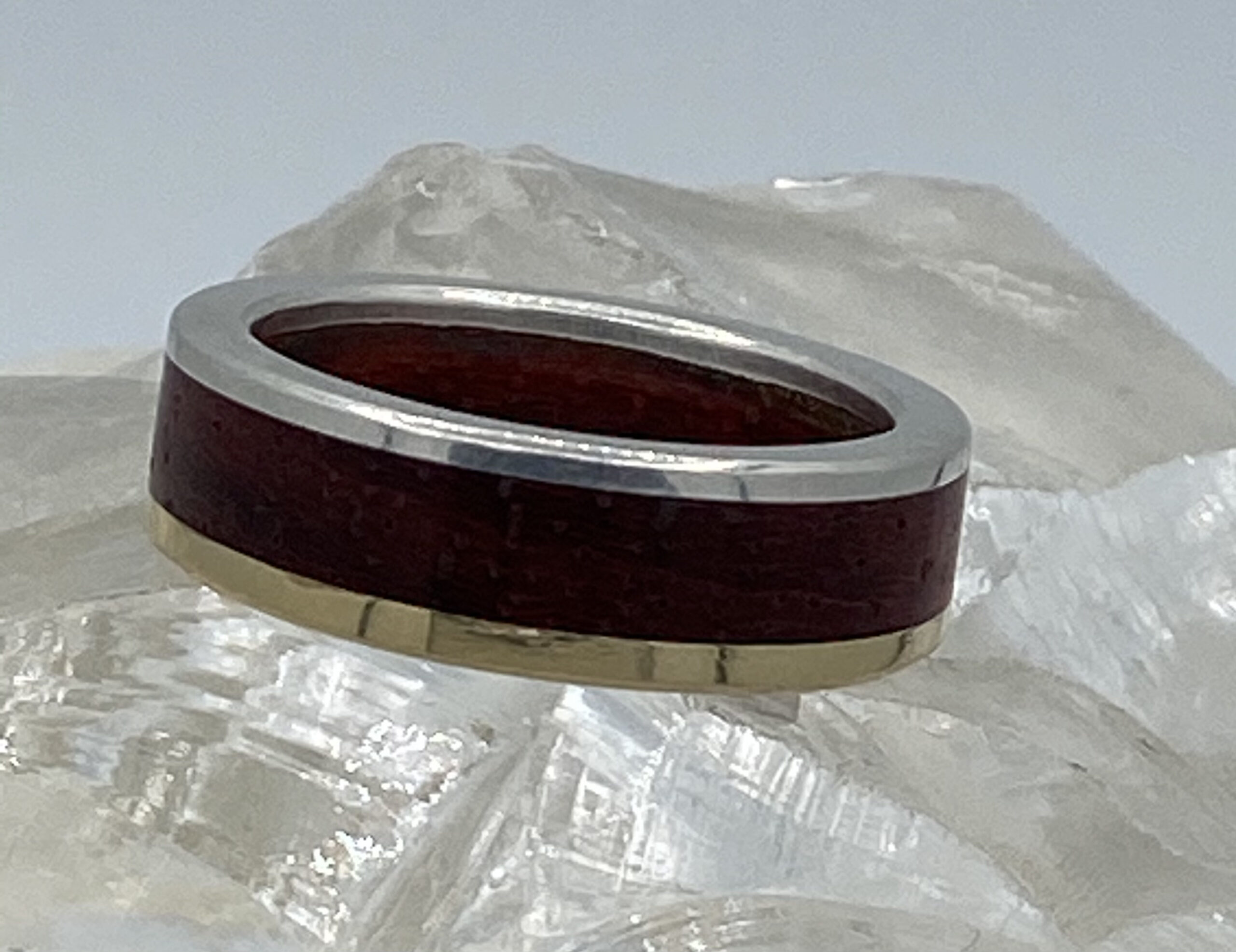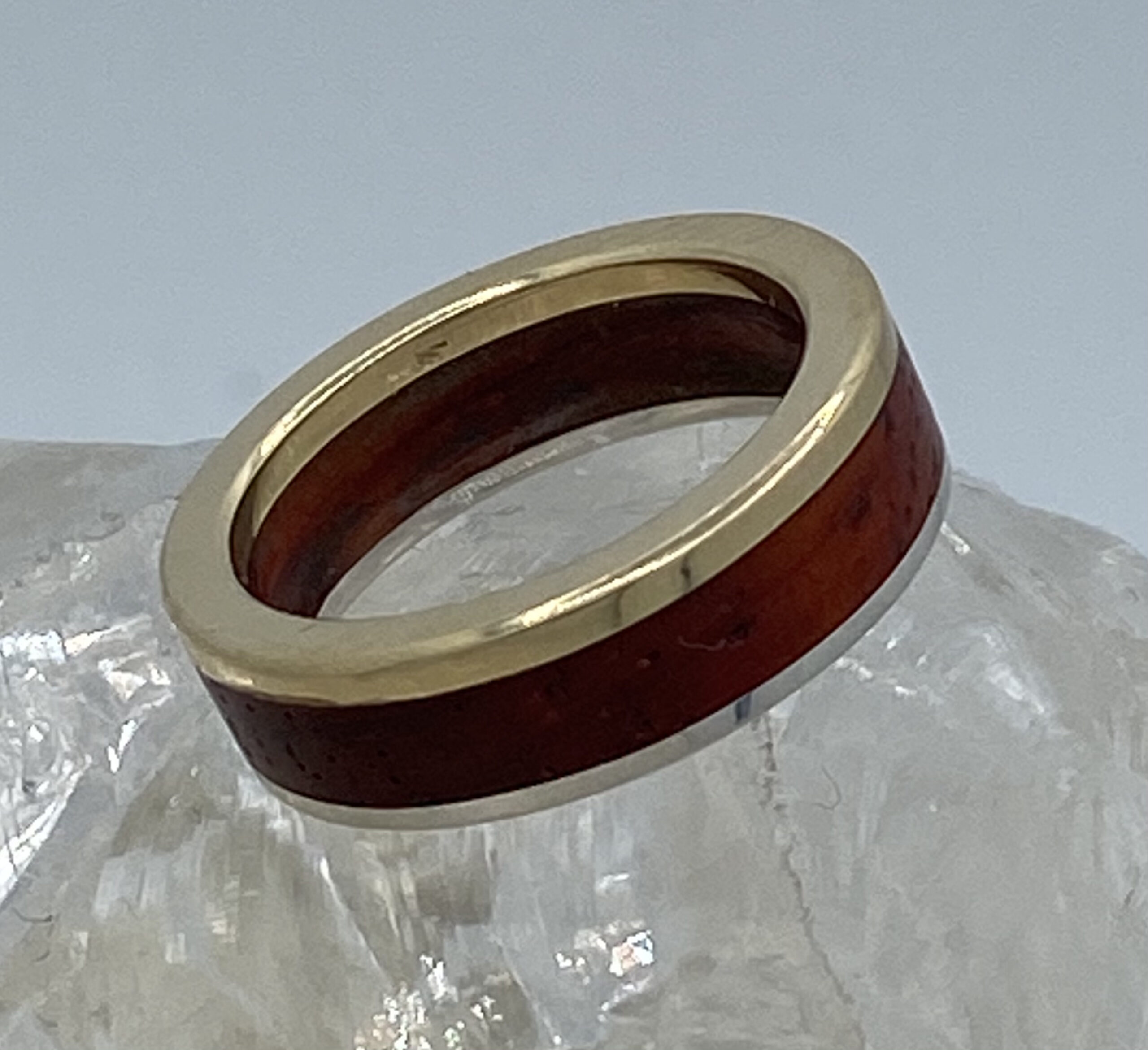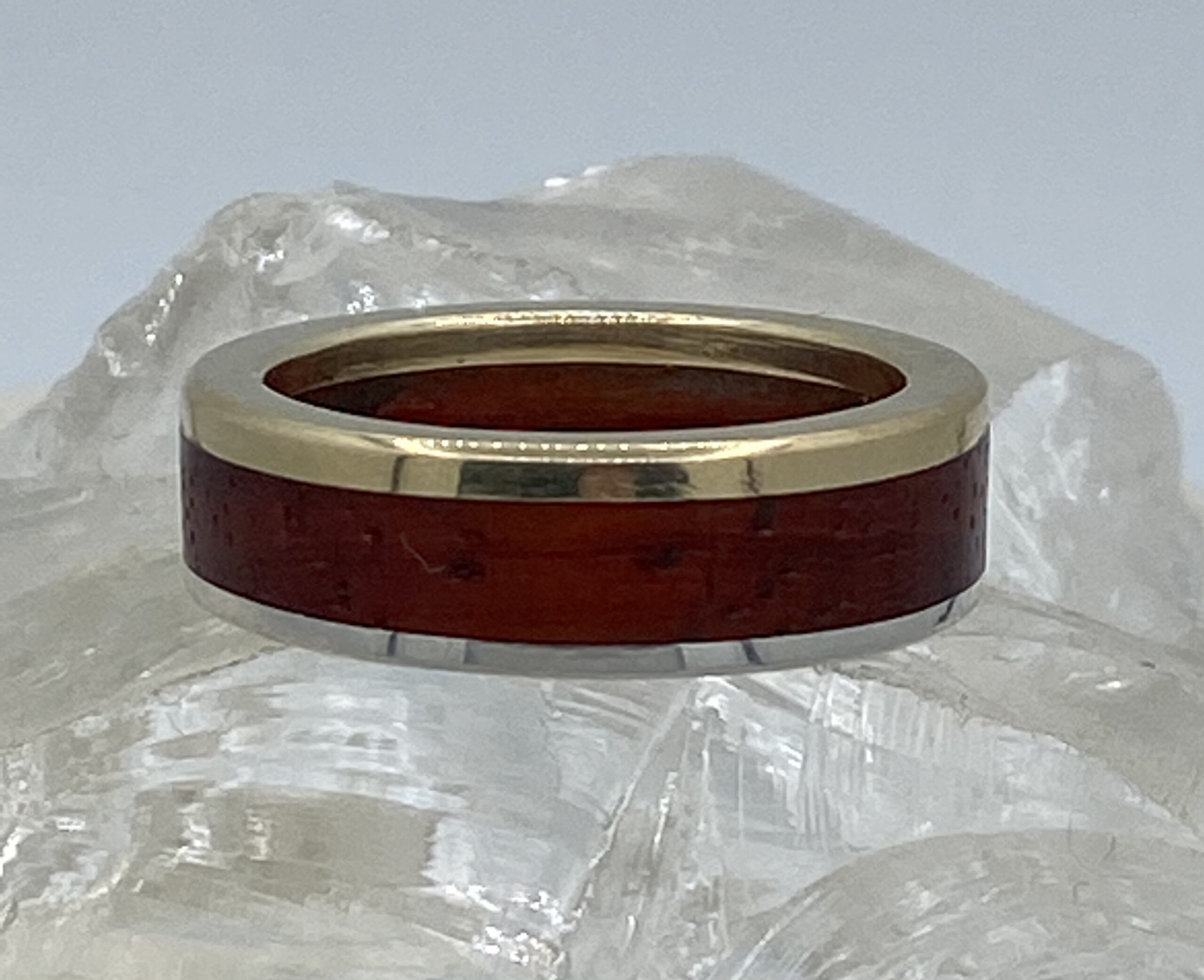 Deze ring is gemaakt met Afrikaans hout Padoek en is in verschillende combinaties te leveren