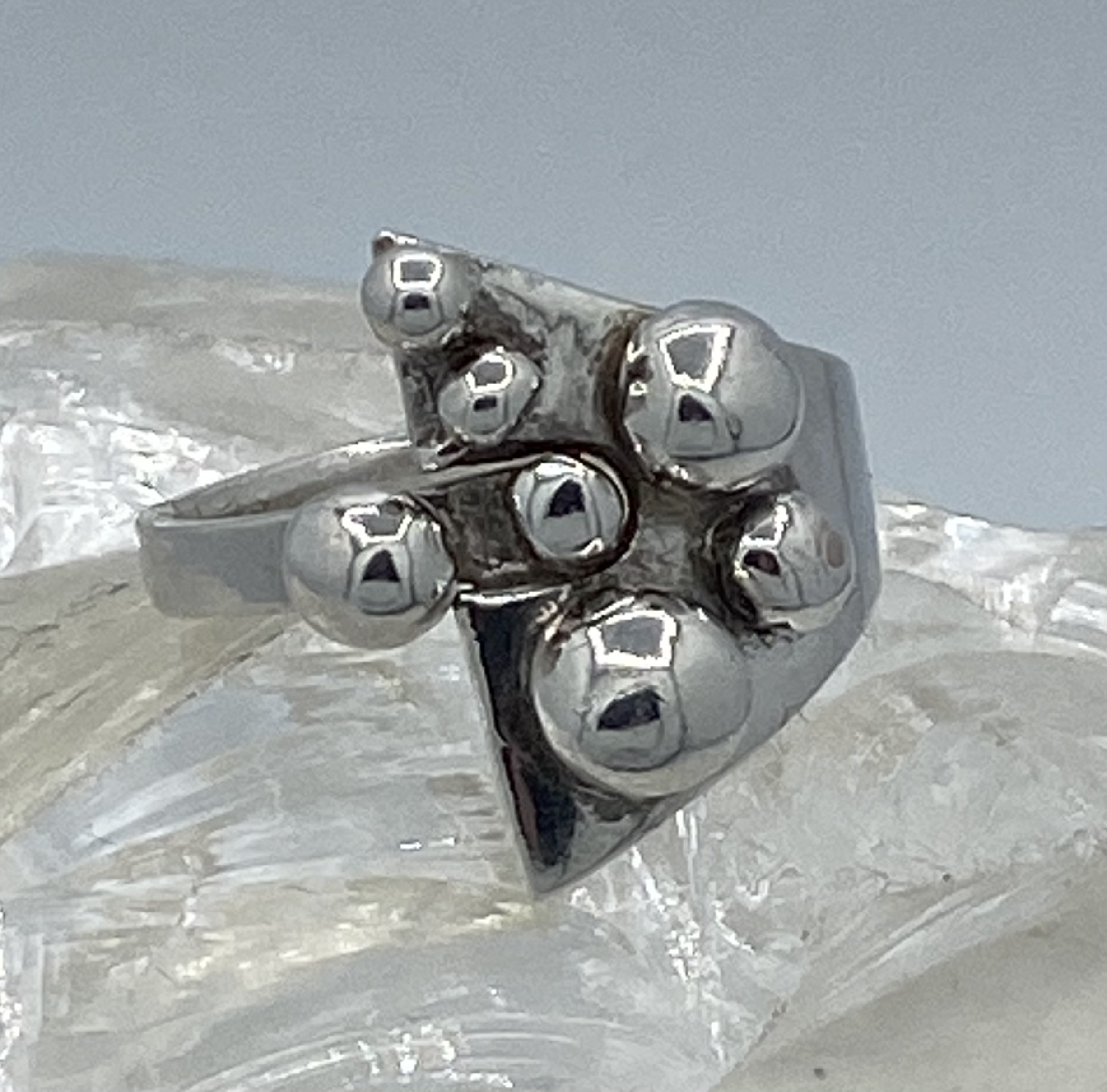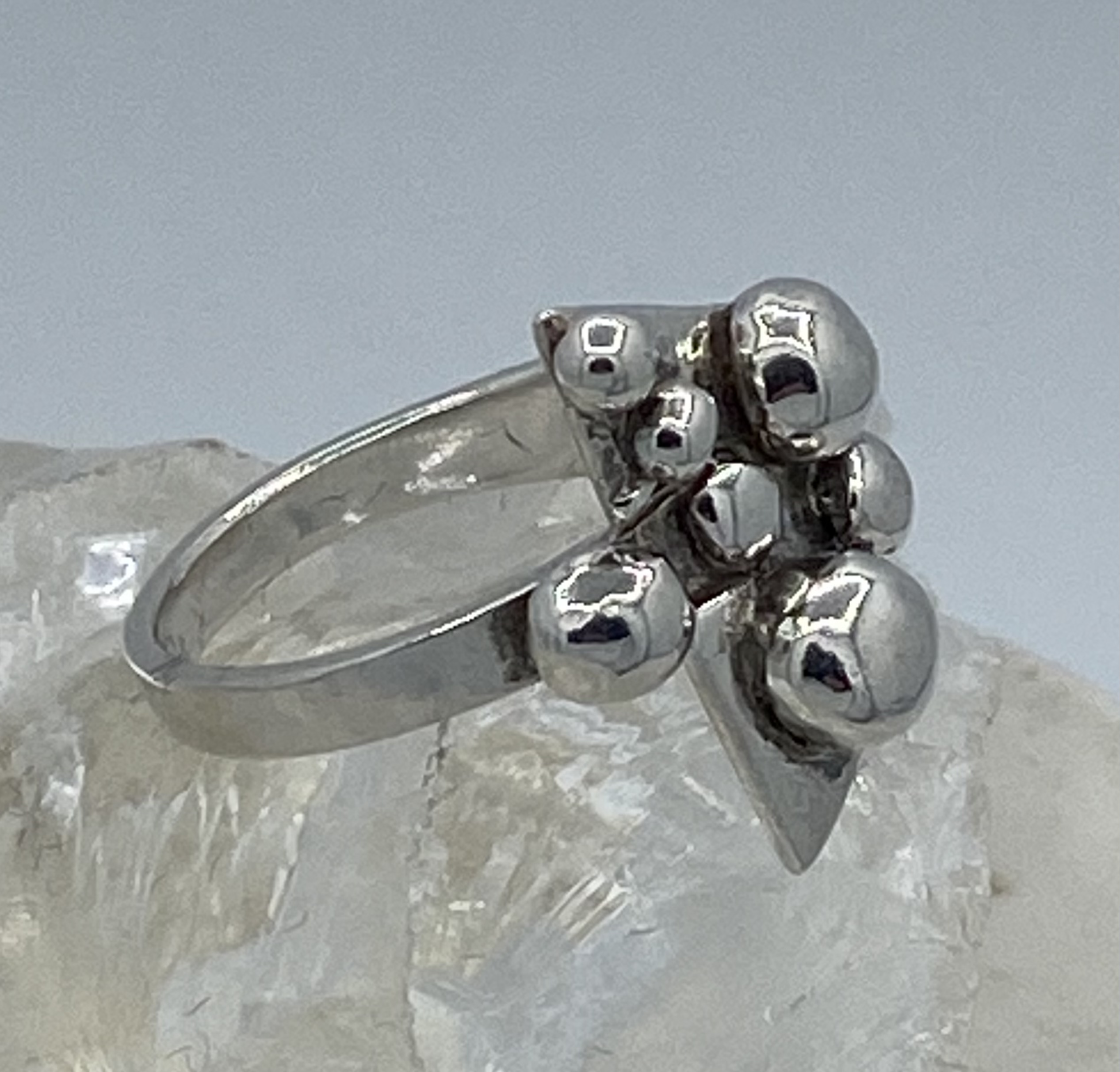 damesring zilver 925 met magnetiet en zilveren bolletje