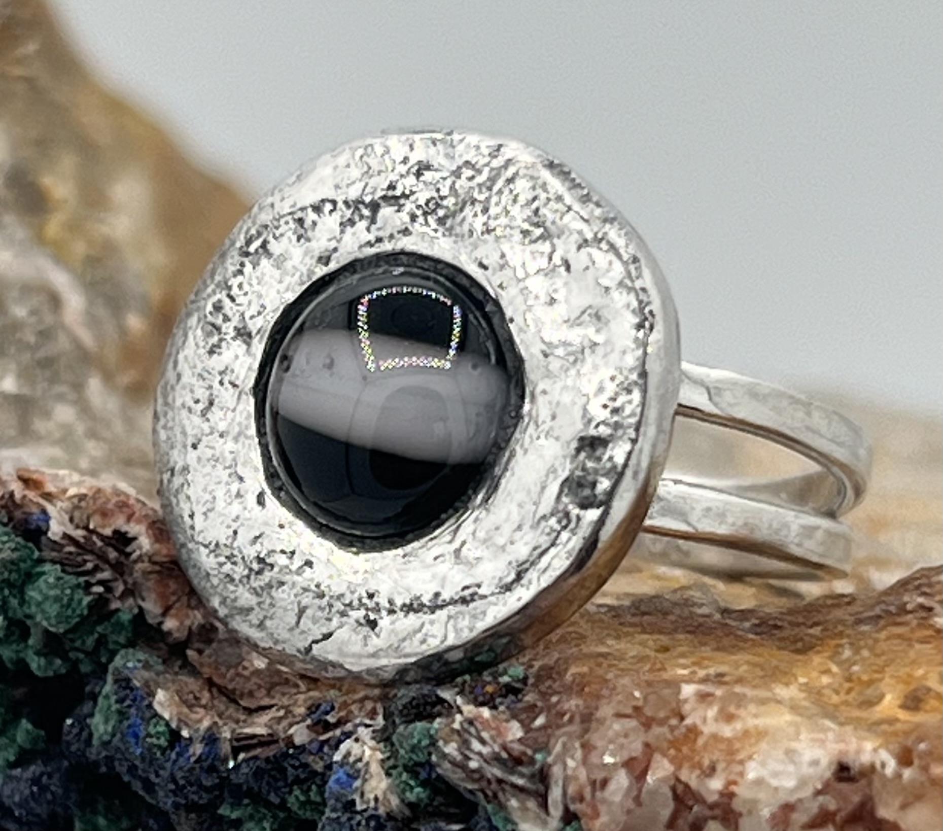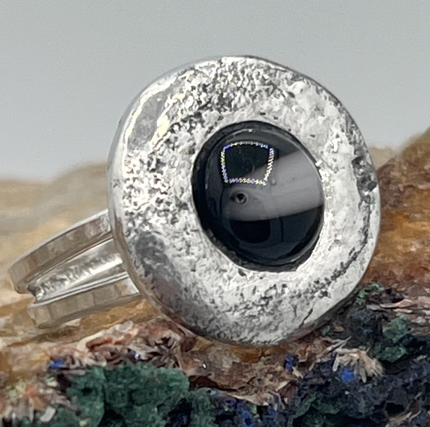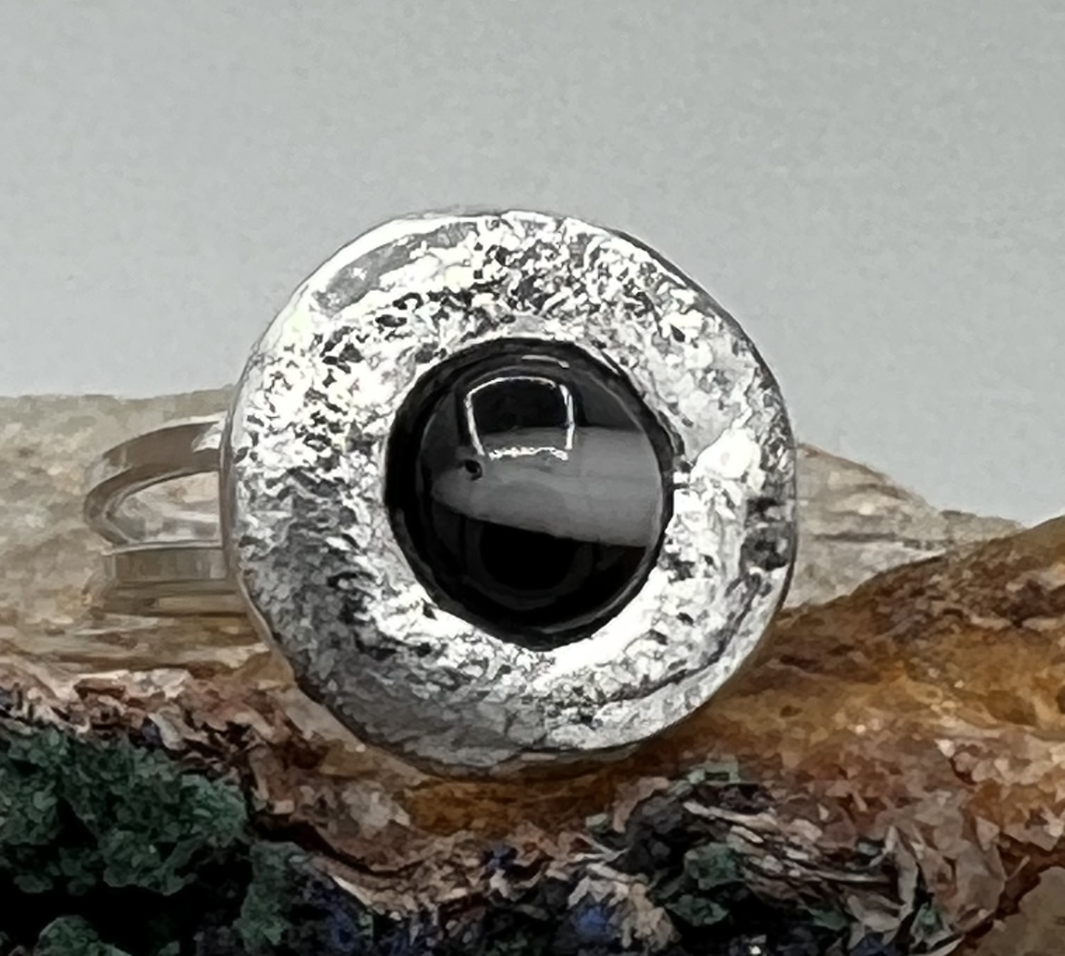 zilveren damesring gesmeden en gehamerd