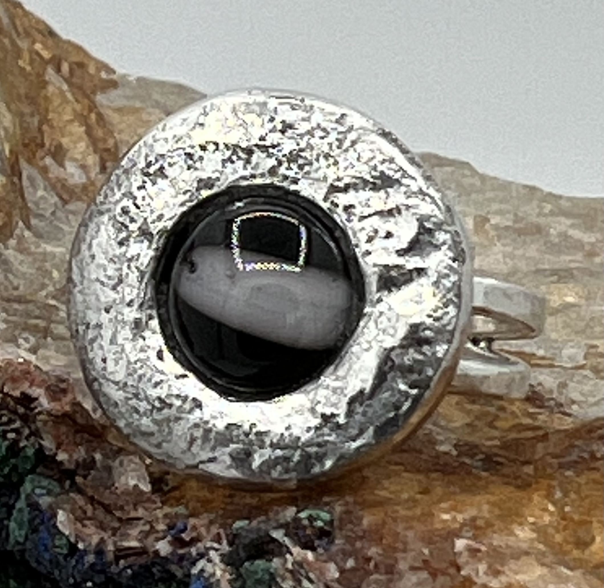 Zilver gesmolten, ruwe afwerking met glasinleg