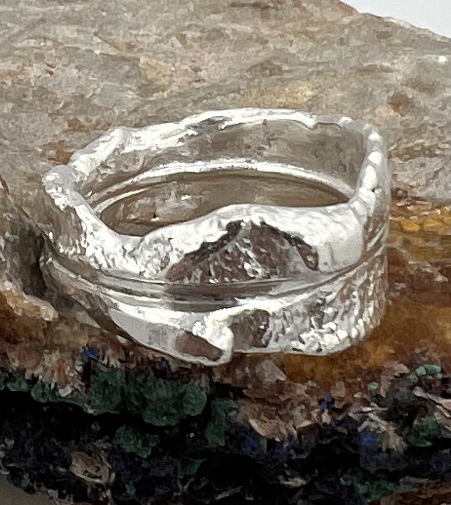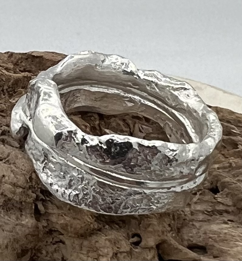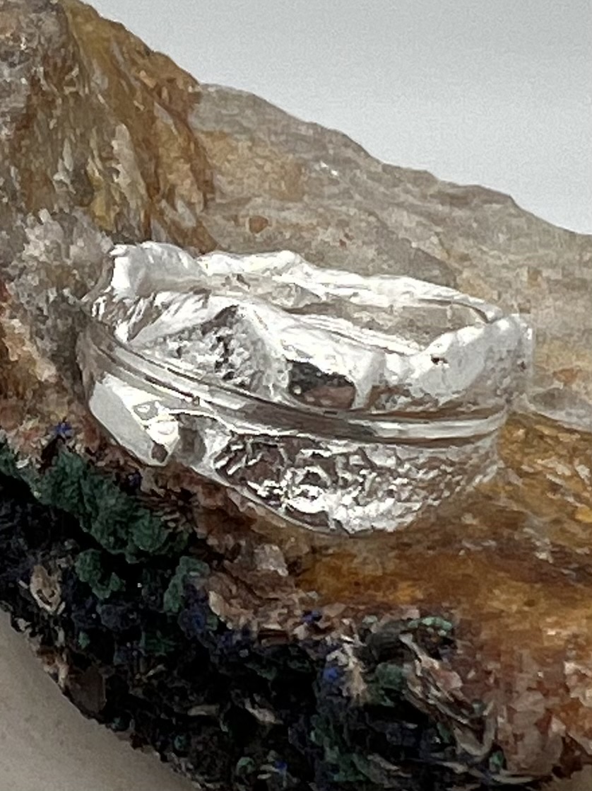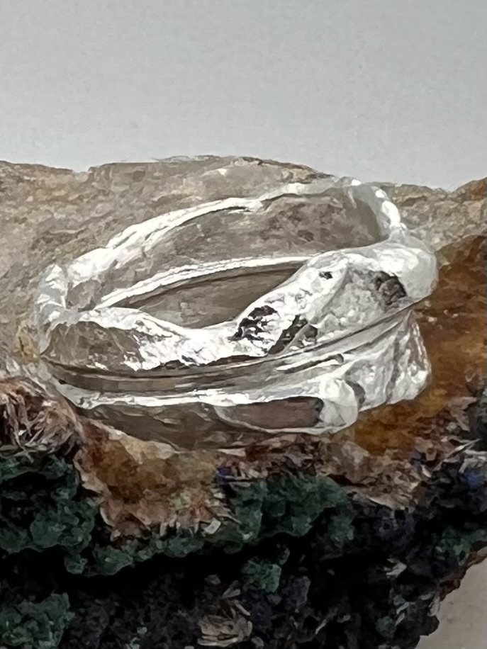 / Zilveren heren/damesring,gesmeden, gehamerd